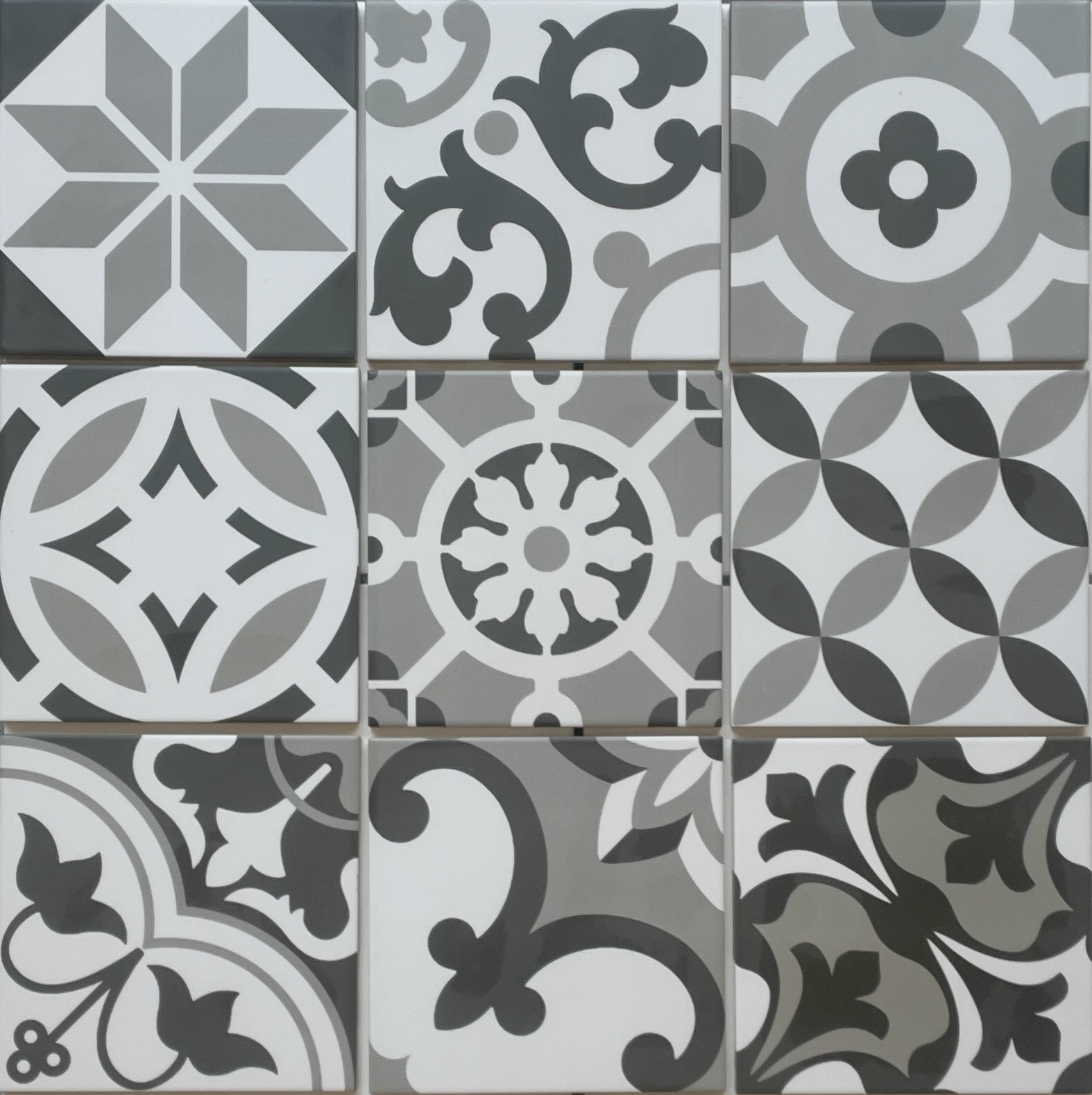 Produit: Grès Cérame Blanc gris effet carreau ciment